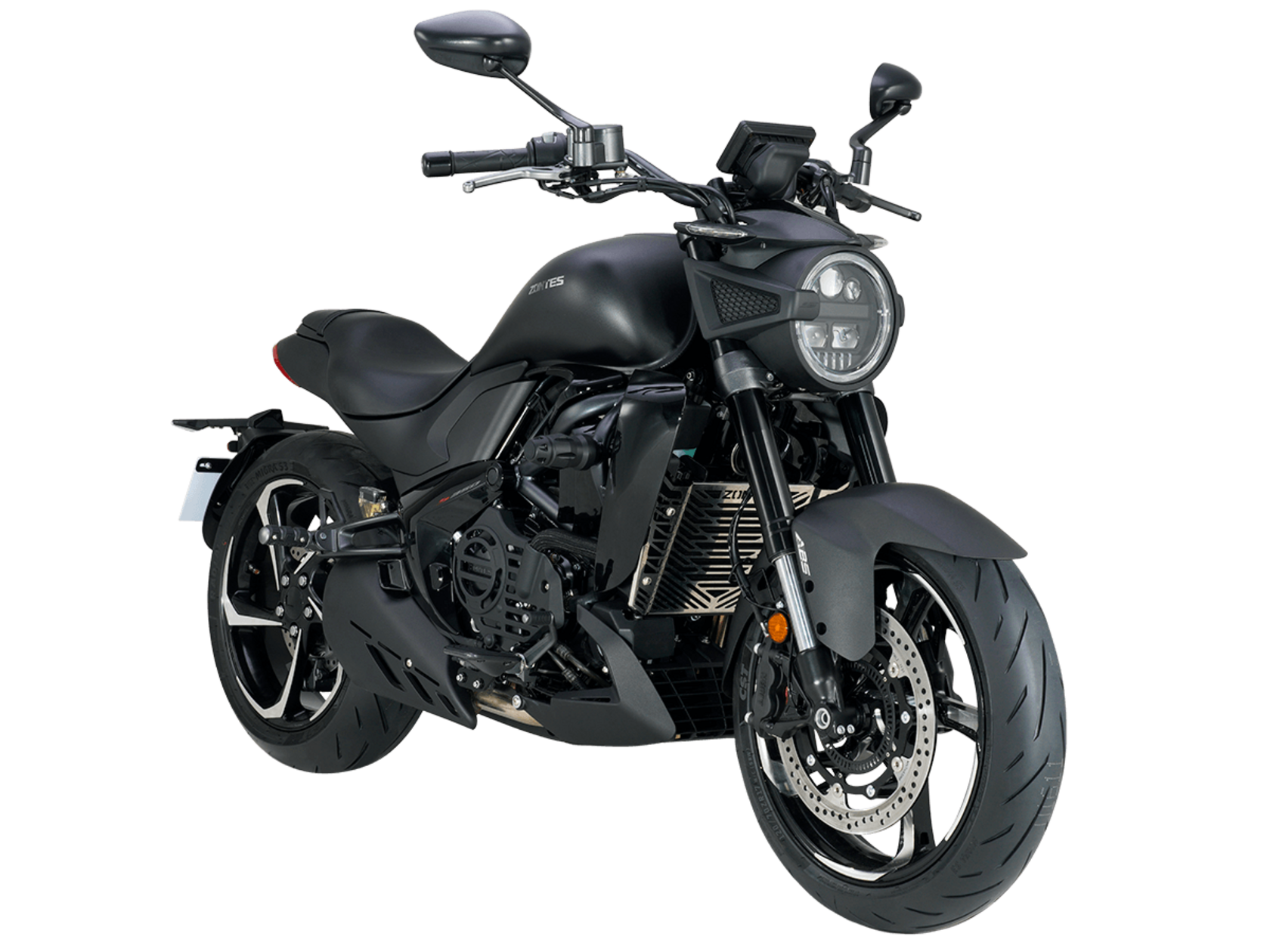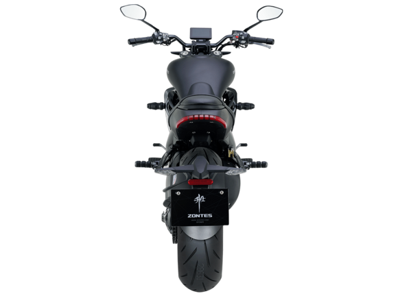 Мотоцикл ZONTES ZT350-S – лёгкий круизёр со стремительным и современным дизайном. Хорошо подходит как для повседневных поездок по городу, так и для покорения дальних маршрутов.Силовая установка представлена одноцилиндровым 4-тактным двигателем ZT184MP с 4 клапанами и 2 верхними распредвалами. Двигатель имеет объём 348 см³ и обеспечивает мощность в 39 л.с. Оснащён инжектором BOSCH и системой жидкостного охлаждения. Механическая коробка передач имеет 6 ступеней и схему 1-N-2-3-4-5-6. Запуск двигателя осуществляется с помощью бесключевого доступа.Ёмкость топливного бака 16 литров.Колёса представлены литыми алюминиевыми дисками диаметром 17 дюймов. На мотоцикл установлены датчики давления в шинах, показатели от которых выводятся на приборную панель. Для подвески спереди используется телескопическая вилка, сзади – моноамортизатор. Гидравлические дисковые тормоза произведены испанской компанией J.JUAN, входящей в холдинг BREMBO.Для освещения используется яркая LED-оптика, а приборная панель представлена цифровым дисплеем. Рычаги тормоза, сцепления и лапки КПП можно отрегулировать. Имеется 2 USB-порта.Габариты мотоцикла 2080х860х1150 мм. Колёсная база 1430 мм. Высота по седлу 750 мм. Вес 176 кг.