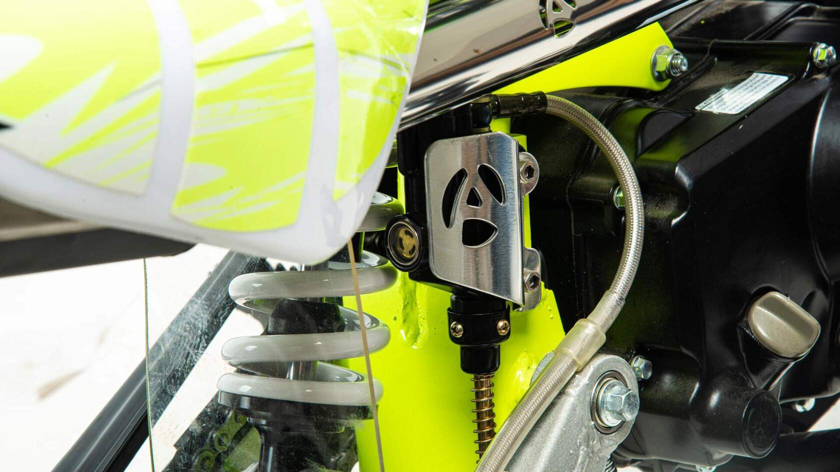 Недорогой надёжный питбайк APEX10 идеален для поездок по грунтовым дорогам и бездорожью для детей которые уже научились ездить на маленьких мотоциклах объемом 50 куб.см. Хорошо чувствует себя на мягком и среднем грунте.Питбайк прост в управлении и не требует специального ухода, подойдёт детям до 13 лет.У питбайка APEX10 отличный узнаваемый дизайн. Конструкция подчёркивает неуступчивый спортивный характер питбайка, который не остановится ни перед одним препятствием. Пластик комбинированный, прочный, не ломается при сгибании.Передняя подвеска — телескопическая нерегулируемая вилка перевёрнутого типа, которая отлично подходит для преодоления ям, ухабов и других неровностей плохих дорог или их отсутствия. Задняя подвеска маятниковая с моноамортизатором. Руль 22 мм с высоким подъёмом и перекладиной удобен для мотоциклистов разного роста.Питбайк весит всего 65 кг, при этом выдерживает вес до 75 кг. Оснащён CNC траверсами, рама полудуплексная стальная, мотоцепь качественная. Колёса спицованные