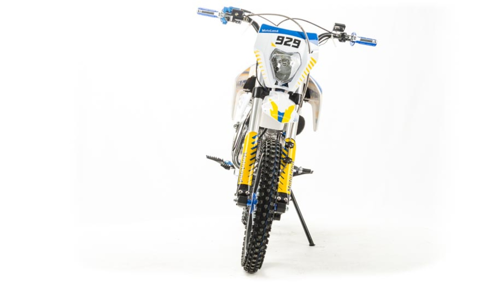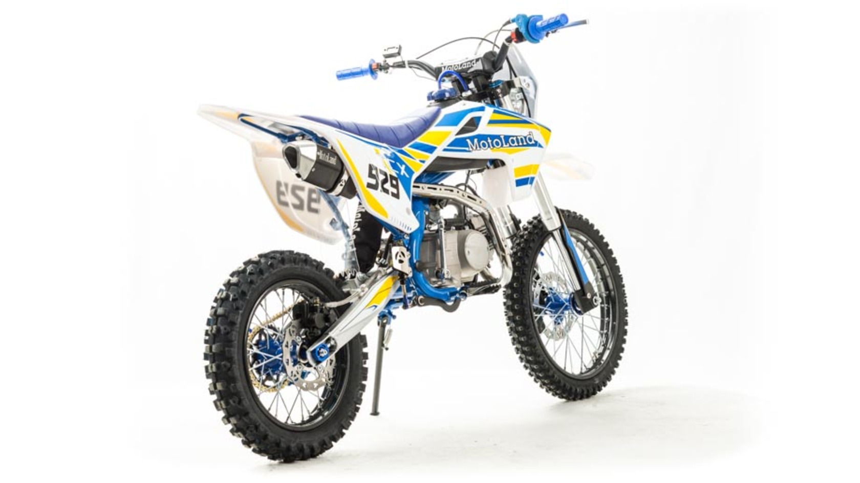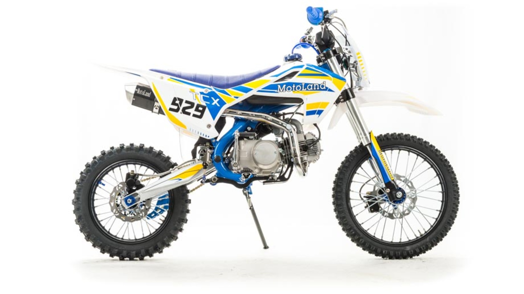 Питбайк Motoland TCX125 идеален для поездок по грунтовым дорогам и бездорожью. Хорошо чувствует себя на мягком и среднем грунте, разгоняется до 90 км/ч. Оснащён спортивными траверсами, весит всего 75 кг.Питбайк прост в управлении и не требует специального ухода, подойдёт как новичкам, так и любителям мотокросса.У питбайка отличный узнаваемый дизайн. Конструкция подчёркивает неуступчивый спортивный характер, который не остановится ни перед одним препятствием.Комбинированный прочный пластик не ломается при сгибании.Передняя подвеска — телескопическая вилка перевёрнутого типа, которая отлично подходит для преодоления ям, и других неровностей плохих дорог или их отсутствия. Задняя подвеска маятниковая с моноамортизатором.Питбайк оснащён карбюратором с фильтром нулевого сопротивления Nibbi PE n19 и одноцилиндровым четырёхтактным двигателем с воздушным охлаждением. Надёжный мотор 153FMI мощностью 8 л. с. и объемом 125 см³ , установленный на усиленной стальной раме, коробка передач механическая, четырёхступенчатая.Тормоза дисковые, передний тормозной суппорт двухпоршневой, задний — однопоршневой.Питбайк относится к недорогим моделям, которые при должной эксплуатации работают без сбоев. Не занимает много места в гараже. При необходимости в нём легко сменить любую повреждённую деталь.