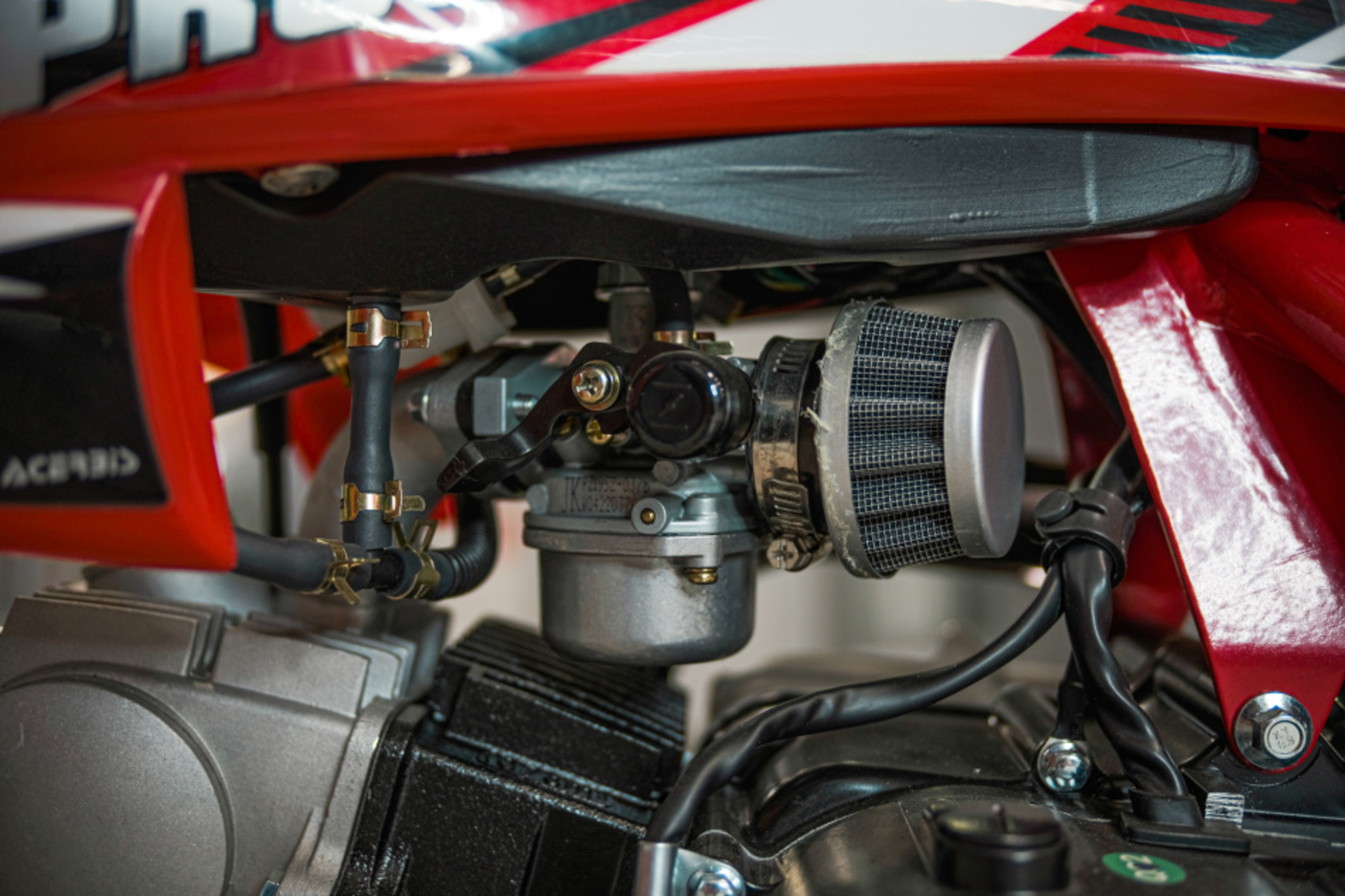 Идеально подойдет юным райдерам от 5-12 лет. Питбайк оснащен надежным четырехтактным двигателем с электростартером, удобной хромомолибденовой рамой и автоматической КПП.