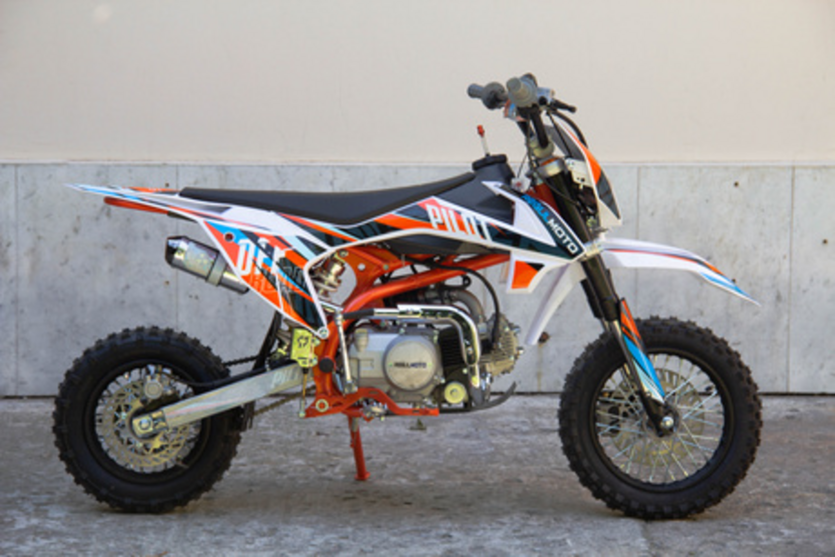 Regulmoto Pilot 110 c электростартером и полуавтоматической коробкой передач – питбайк начального уровня, созданный специалистами Американского мотобренда PitsterPro для юных мотогонщиков.Данная модель представляет линейку мототехники Regulmoto модельного ряда 2021 года, отличается высокой надежностью и простотой в эксплуатации.В прочной и надежной раме питбайка стоит 4х-тактный двигатель YX110 воздушного охлаждения с 4-ступенчатой полуавтоматической трансмиссией.Высокий класс используемых комплектующих обеспечивают необходимый для внедорожной мототехники уровень надёжности и комфорта.Яркая светодиодная фара позволяет использовать питбайк также в тёмное время суток.В 2021 году Regulmoto Pilot получил ряд обновлений – кроме нового дизайна графики, изменения коснулись дизайна пластикового обвеса, подножек, рычагов тормоза, переключения передач и глушителя.Эта модель рассчитана на детей и подростков возрастом от 7 до 15 лет.Наличие полуавтоматической трансмиссии позволяет детям и подросткам с минимальным опытом управления двухколесной мототехникой быстро освоить основы и совершенствовать навыки вождения на бездорожье.