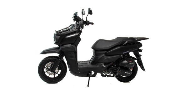 Скутер Motoland Tank - отличный вариант для загородных поездок и рыбалки: имеет множество дополнительных защит и закрытий, колеса 12" с резиной для поездки по грунтовой дороге и асфальту.Брутальный внешний вид и черный цвет делает его не похожим на другие скутера. Дополнительные ДХО, светодиодные поворотники и стоп-сигнал.На скутере установлен одноцилиндровый четырехтактный двигатель 157 QMJ мощностью 10 л/с и рабочим объемом 150 см3 с принудительным охлаждением, что позволяет ему не перегреваться даже в сильную жару. Система запуска кикстартер + электростартер. Трансмиссия - вариатор, не требующий манипуляциях с переключением скоростей. Это очень удобно при эксплуатации и не вызывает сложностей, просто сел, повернул ручку газа и поехал. Все тормоза - дисковые гидравлические.Подвеска - передняя вилка телескопическая и два задних амортизатора. Колесные диски литые алюминевые, на которые установлены качественные покрышки 120/70-12".Выдерживает нагрузку до 150 кг, что позволяет перевозить одного пассажира. Под сиденьем есть большое багажное отделение + площадка для крепления дополнительного кофра. Приборная панель — электронная, с очень крупными, легко читаемыми цифрами и часами; со всеми необходимыми указателями.Габариты: 1900 х 710 х 1170 мм. (без учета зеркал)