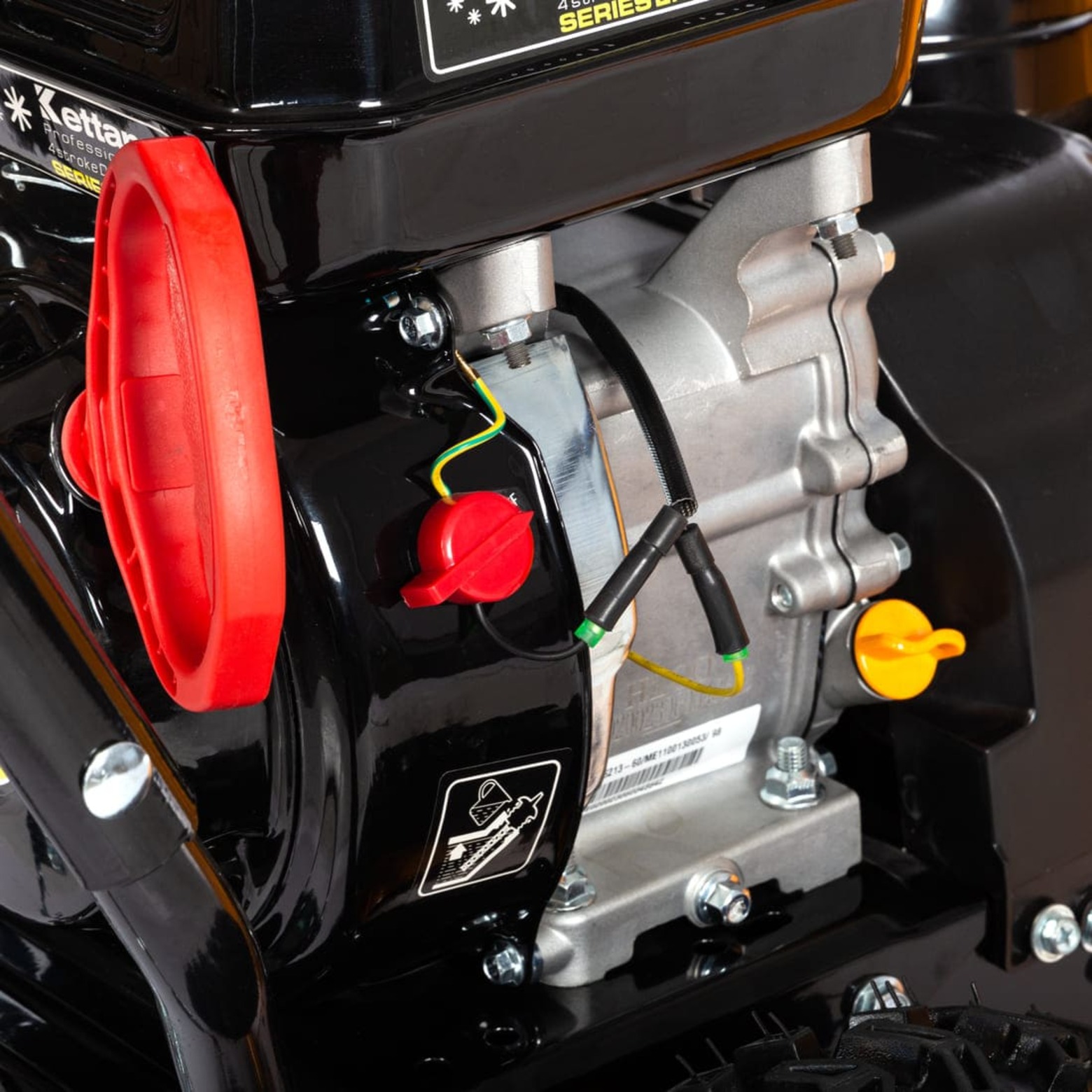 Kettama 80B — одна из самых популярных моделей в своём классе с управлением на панели оператора. 80B относится к линейке бытовых снегоуборщиков Basic, обладая всеми её достоинствами. При демократичной цене качество основных узлов остаётся на высоком уровне. Это касается рамы, редуктора, ДВС и трансмиссии. Снизить цену удалось благодаря оптимизации опций комфорта. То есть, эти модели максимально упростили, оставив только основные элементы, необходимые для качественной уборки снега. При этом всё управление вынесено на панель оператора.Эта модель способна справляться со снегом плотностью до 400 кг/м3 с производительностью до 4 т/ч. Этому способствует достаточно высокая мощность двигателя в 7 л. с. при небольшой ширине уборки в 610 мм. Kettama 80B Basic объединяет удобство управления и достаточно высокую рабочую ресурсность. Kettama 60B имеет возможность управления одной рукой. Это становится возможным благодаря одновременной фиксации рычагов движения колёс и шнека. Учитывая, что рычаг управления дефлектором выброса снега находится на панели оператора, уборка снега становится очень быстрой и удобной.Все конструктивные решения и качество материалов направлены на увеличение срока службы. Например, оси колес и шнека подвешены не на втулках, а на подшипниках. Большинство пластиковых элементов заменены на металлические.Дефлектор из усиленного металла даёт возможность менять направление выброса снега на 190 градусов при помощи рукоятки на корпусе машины, позволяя длительное время непрерывно заниматься уборкой практически всех типов снега. Стальной агрессивный шнек с добавлением хромомолибденового сплава позволяет эффективно справляться даже со слежавшимся снегом с элементами глетчерного льда.Скорость уборки: 6 передач вперед и 2 назад, что позволяет выбрать оптимальный режим работы в зависимости от сложности задачи и типа снега.Металлическая рама с добавлением холодостойкого нихрома обеспечивает долговечность конструкции и возможность работать даже при экстремально низких температурахСнегоуборщики Kettama. Наша техника станет для вас отличным подспорьем в уборке льда. Надёжный и стабильный двигатель с длительной гарантией, обеспечиваемой опытными специалистами, всегда вас выручит в момент нужды и избавит от лишней мороки. При этом нашим инженерам удалось добиться достойного соотношения качества к цене. Это позволит облегчить жизнь Вам и Вашей семье, не получив серьёзного урона по кошельку.Снегоуборщики Kettama являются одними из самых передовых и технологичных на российском рынке. Несмотря на свой привлекательный внешний вид, дизайн предельно прост и функционален, что повышает надёжность техники, исключая случайные поломки и снижая частоту обслуживания даже при регулярном использовании. Специально разработанные шнеки-ледорубы с агрессивным строением лезвий позволяет избавляться от любого, даже замёрзшего снега, и даже льда. Благодаря им Вы просто не будете знать, что есть непреодолимые препятствия. Специально разработанная система направляющих механизмов позволяют регулировать наклон и положение ковша, давая возможность адаптировать механизм под любые ситуации. Проверенные временем и сотнями тысяч пользователей из самых разных стран, пневматические колёса, были разработаны для самых жёстких условий. Увеличенные диаметр и ширина