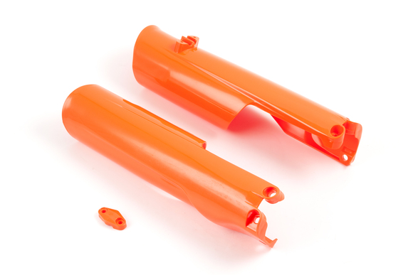 • Защита перьев вилки оранжевого цвета для мотоциклов BRZ SX8. Предназначена для вилок диаметром 48 мм различных производителей (HT, WP, MNT). Выполнена из ударопрочного пластика. Является полным аналогом оригинальной детали KTM с артикулом A46001094000C1. Обеспечивает надежную защиту перьев вилки от механических повреждений, грязи и абразивного износа. Прямая установка без доработок.