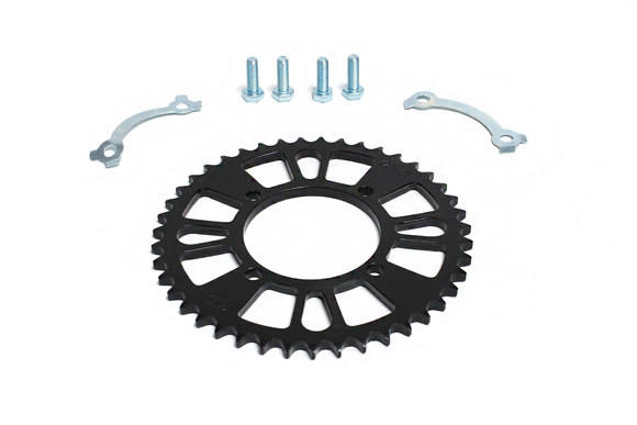 • Задняя ведомая звезда для питбайков с 43 зубьями, предназначенная для цепи типа 420. Изготовлена из прочной стали с закаленными зубьями для повышенной износостойкости. Центральное отверстие 76 мм, крепление по схеме 4×92 мм. Совместима с питбайками 125-190 см³.